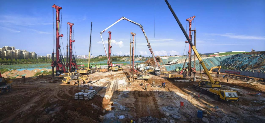 聚焦主楼桩基与主体结构,科学组织桩基施工,在场地允许条件下将桩机增至5台满负荷运转;坚持“主楼优先”,昼夜连续作业,成功克服秋季连绵阴雨影响,抢抓有效工期,确保关键工序“零延误”,实现工程建设“加速度”。